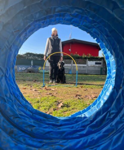 Il cane è chiamato a seguire una sequenza precisa di ostacoli, mantenendo concentrazione e autonomia.